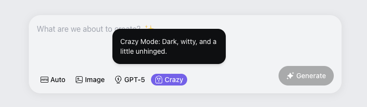 Crazy Mode is meant for entertainment and engagement, not for critical instructions or official guidance.